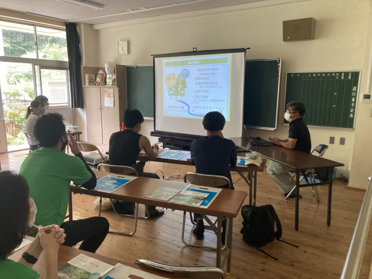 8月には高知大学生とともに「和の森」にて森林学習と間伐作業を行いました。
