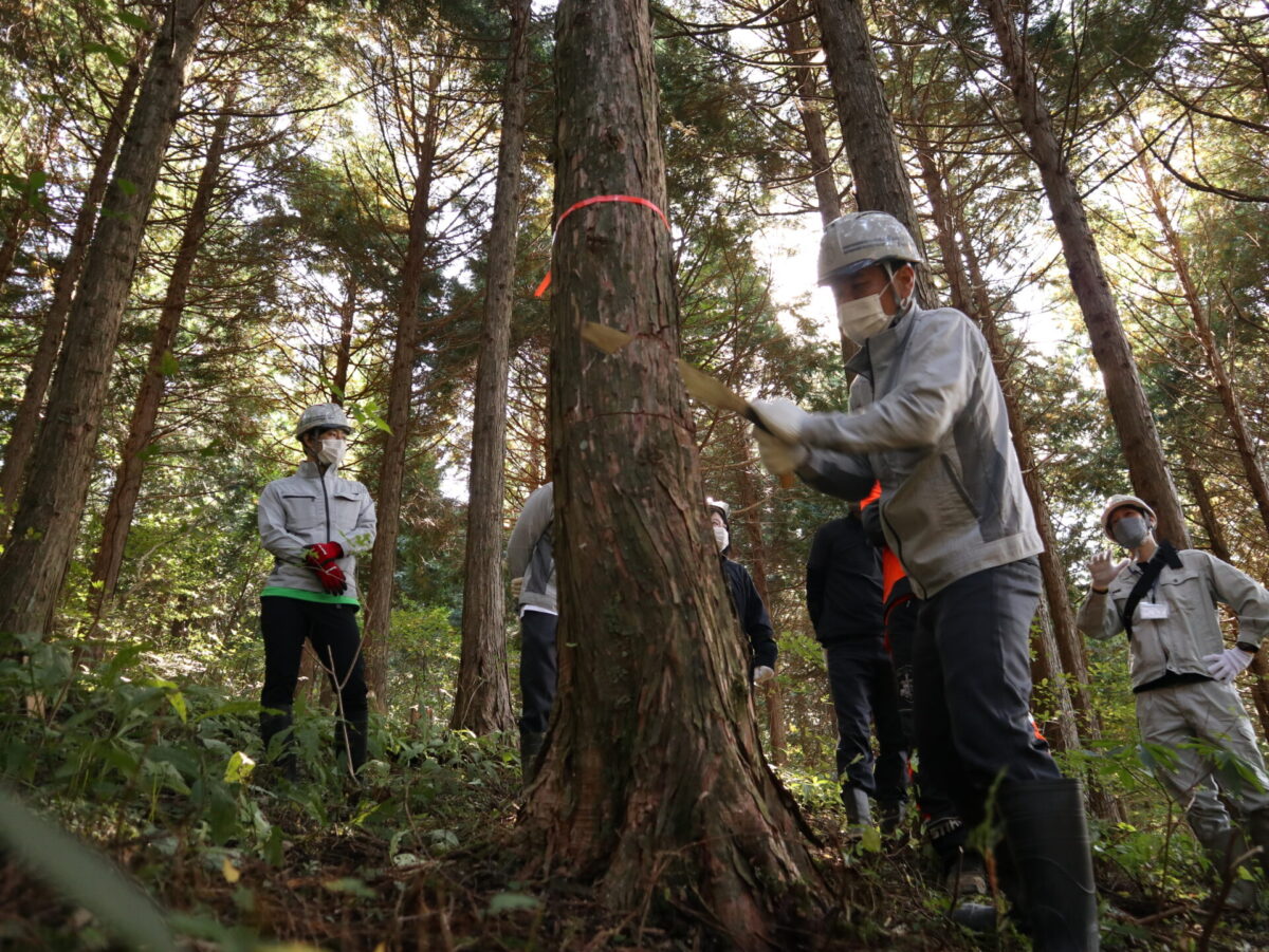 また、10月には和建設の若手・中堅社員研修を「和の森」で実施し、同じく森林学習と間伐による森林保全活動を実施しました。