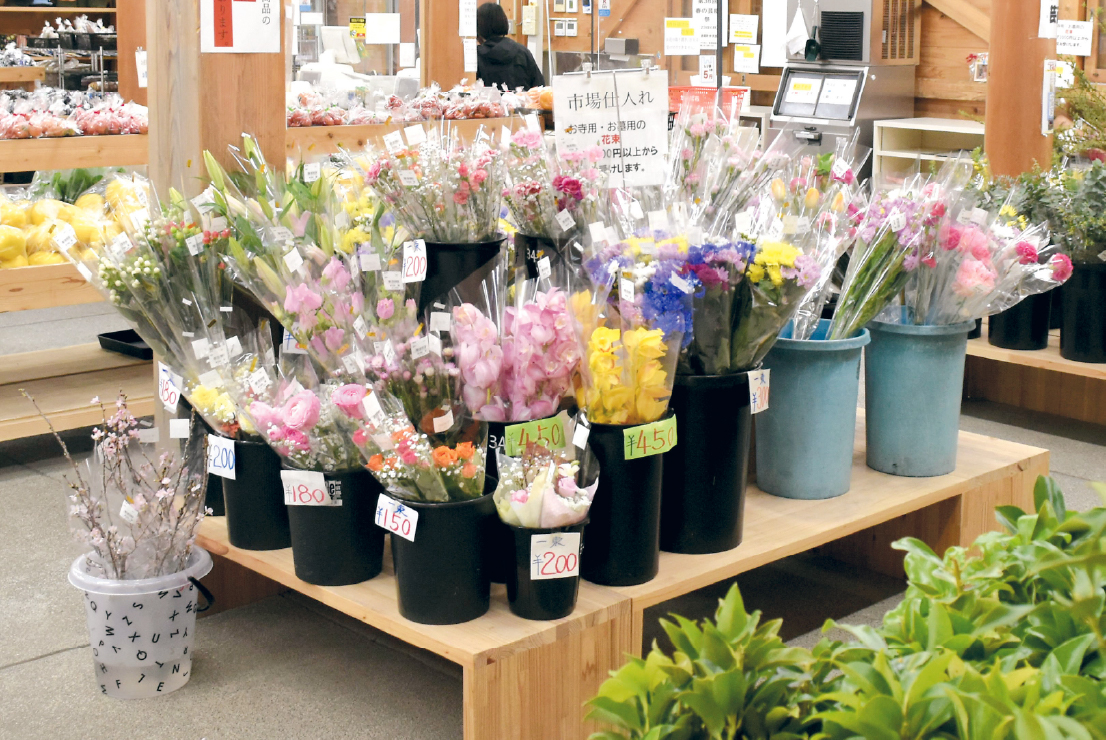 店内には彩り豊かな花々が並び、地元で丹精込めて育てられた花の美しさに癒されます。お土産や贈り物にもおすすめです。