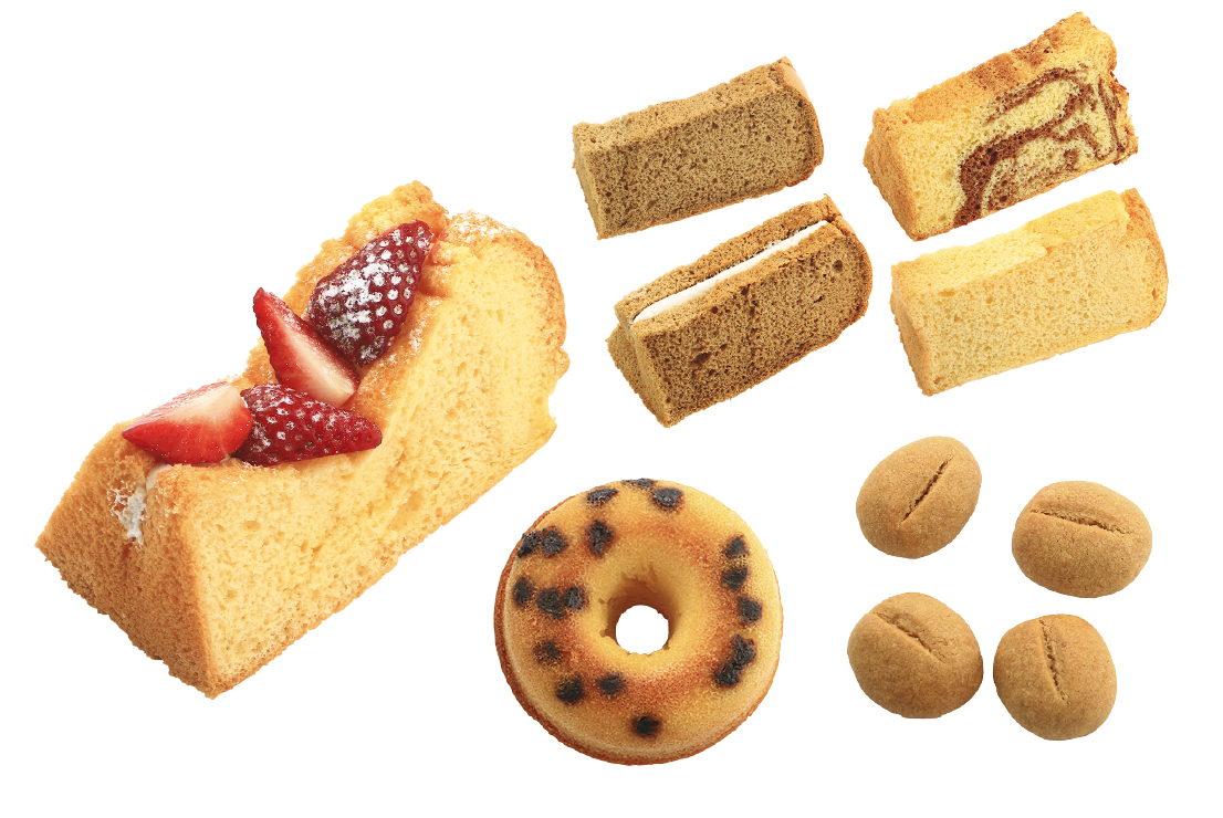 ふんわり食感のシフォンケーキや香ばしい焼きドーナツ、サクサクのクッキーなど、手づくりのスイーツも人気。