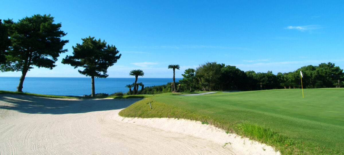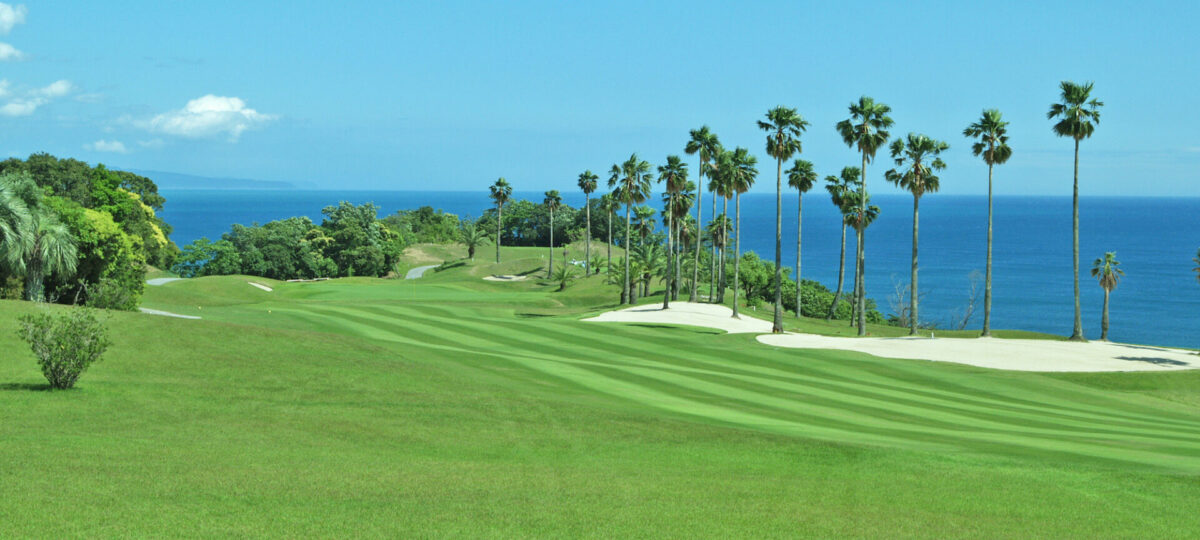 亜熱帯植物が彩るフェアウェイと、紺碧の海が融合する風景は、まさに“旅ゴルフ”と呼ぶにふさわしい体験です。